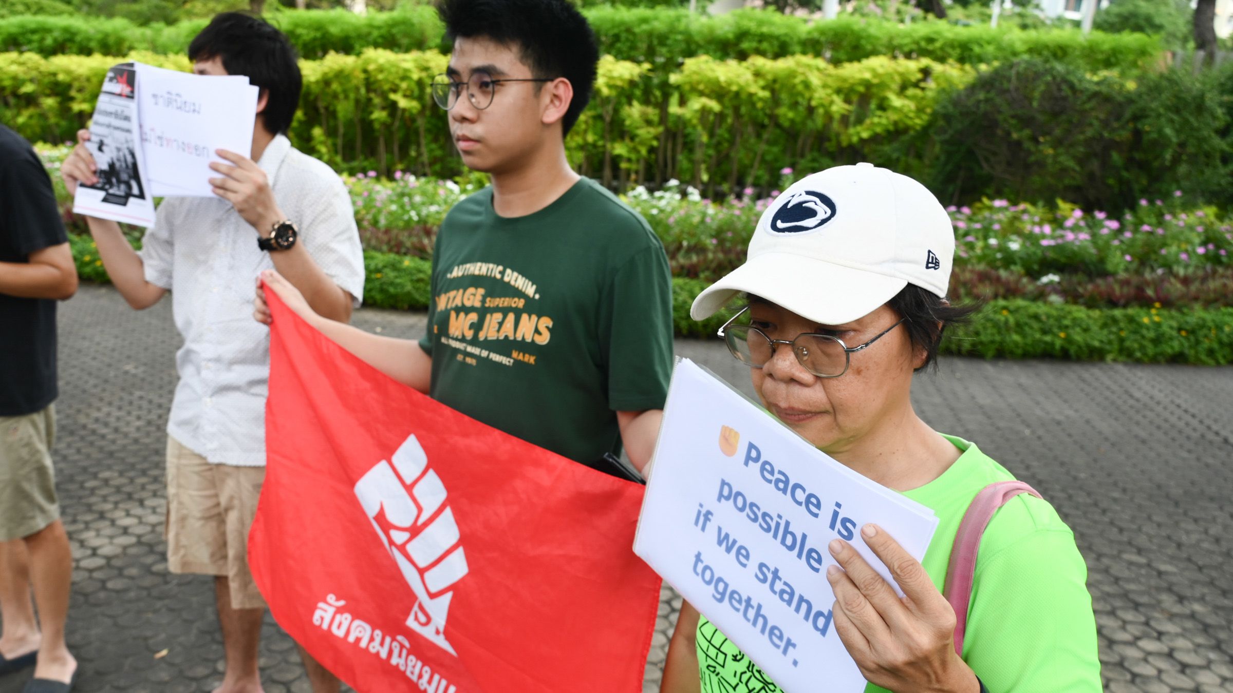 Thai people protest against the conflict between Thailand and Cambodia in Bangkok on July 26. (Photo by Suzu Takahashi)