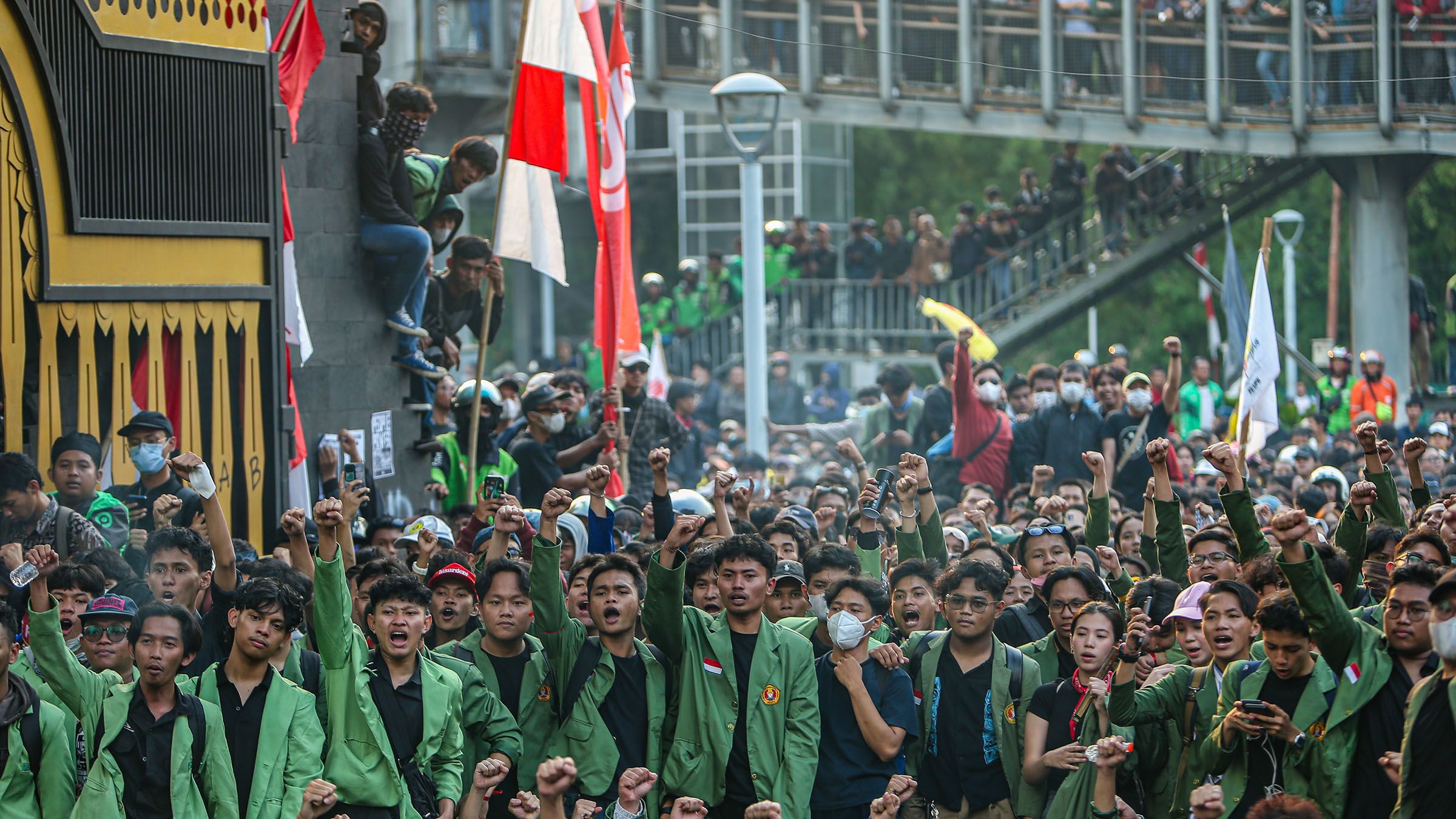 University students show up in numbers outside parliament. (Photo by Willy Kurniawan/Reuters)