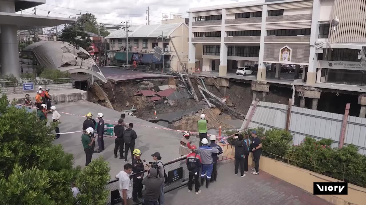 Just outside a police station and Vajira Hospital, in a residential district of Bangkok, a roughly 50-meter-deep sinkhole appeared, pulling down power lines and bursting a water main. The collapse was likely caused by a leaky pipe that caused the ground under a road to subside. No casualties have been confirmed, but nearby roads have been closed and many residents were evacuated.