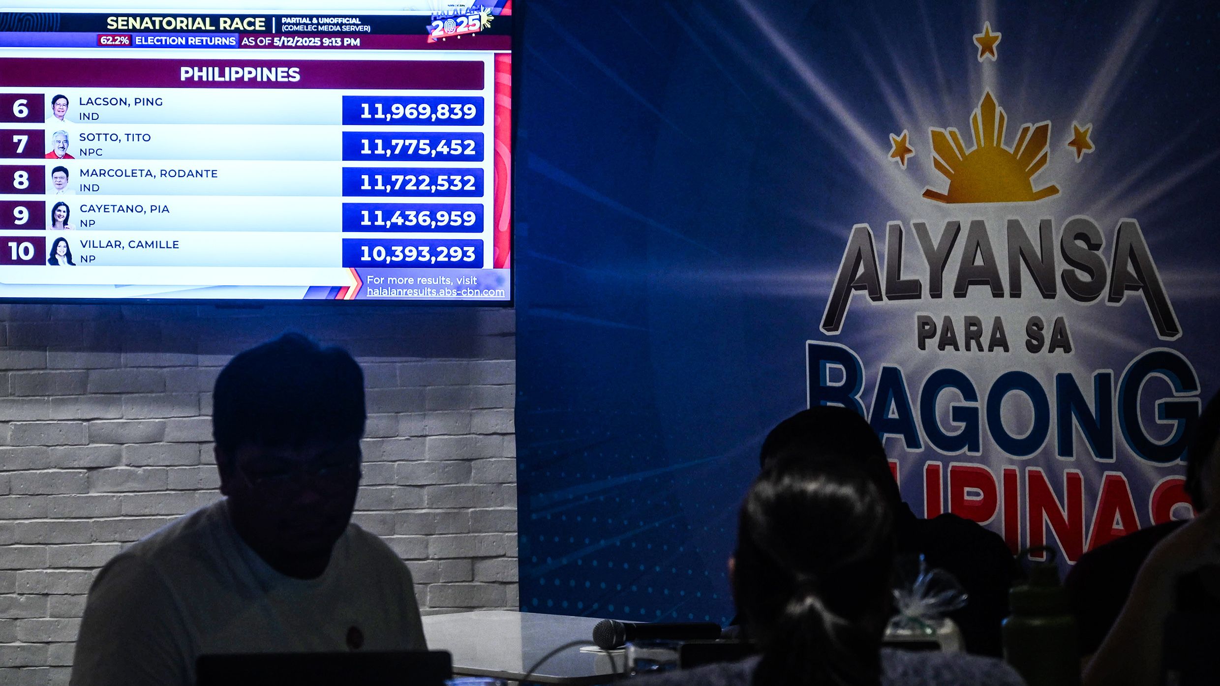 Reporters await election results at the campaign headquarters of President Marcos in Metro Manila on May 12. (Photo by Suzu Takahashi)