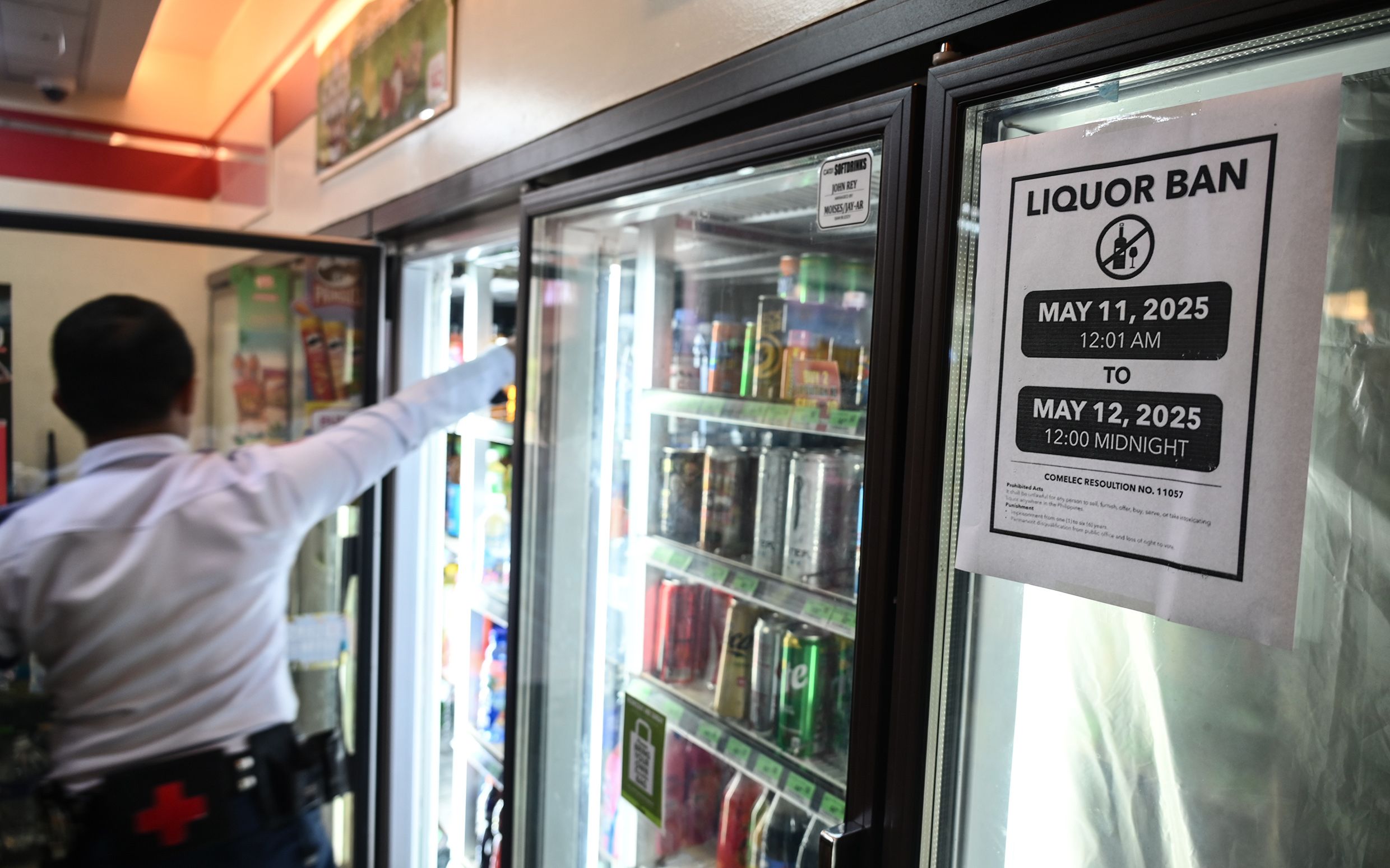 A sign at a shop in Metro Manila advertises a ban on the sale of alcohol in the Philippines on May 11 and 12. The authorities' aim is to keep disorder to a minimum during the election. (Photo by Suzu Takahashi)