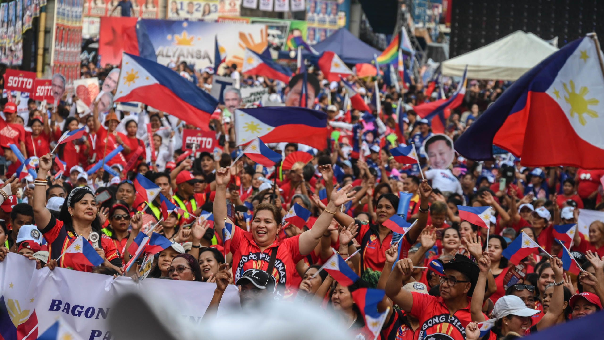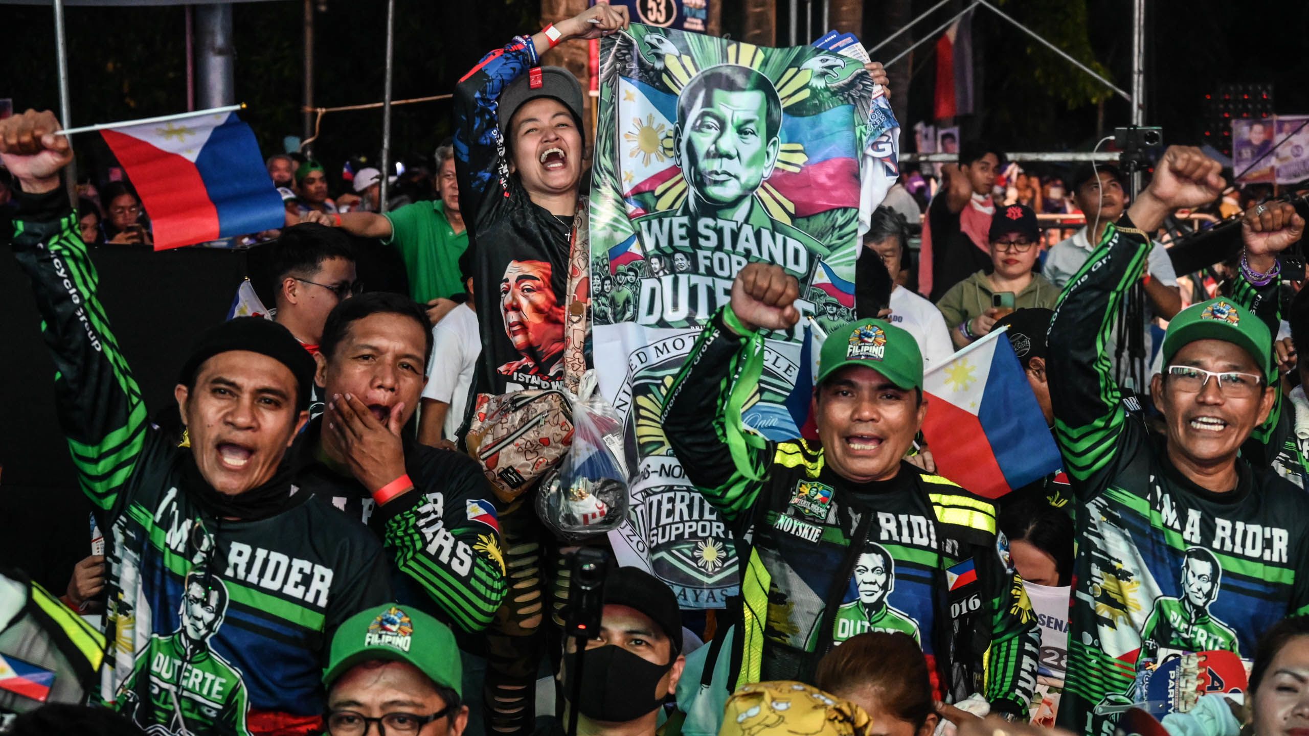 Supporters of former Philippine President Rodrigo Duterte cheer during a final PDP rally in Manila on May 8. (Photo by Suzu Takahashi)
