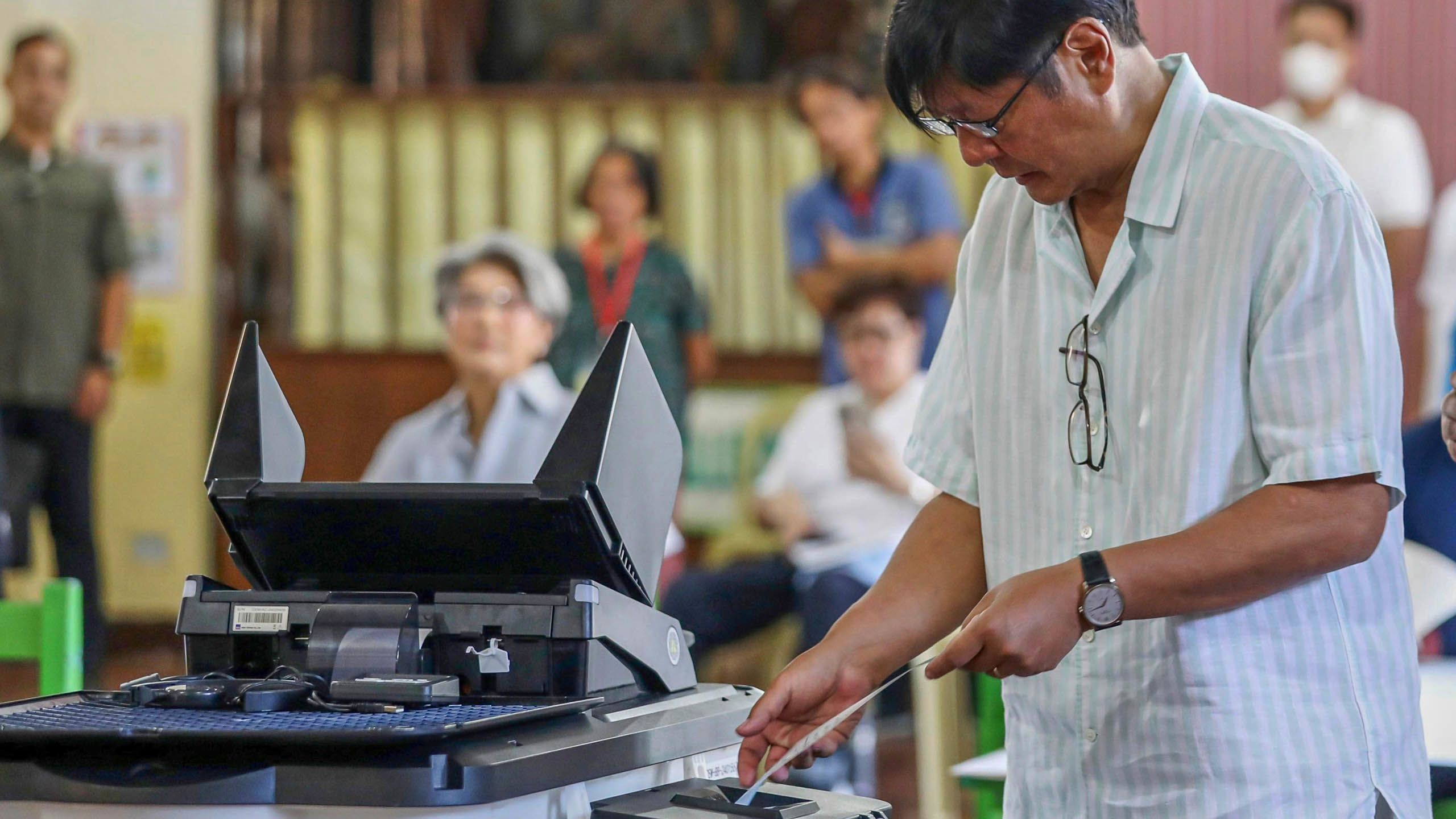 President Ferdinand Marcos Jr. casts his ballot at a polling station in Batac City, Ilocos Norte province, on May 12. (Photo by Presidential Communications Office/AP)