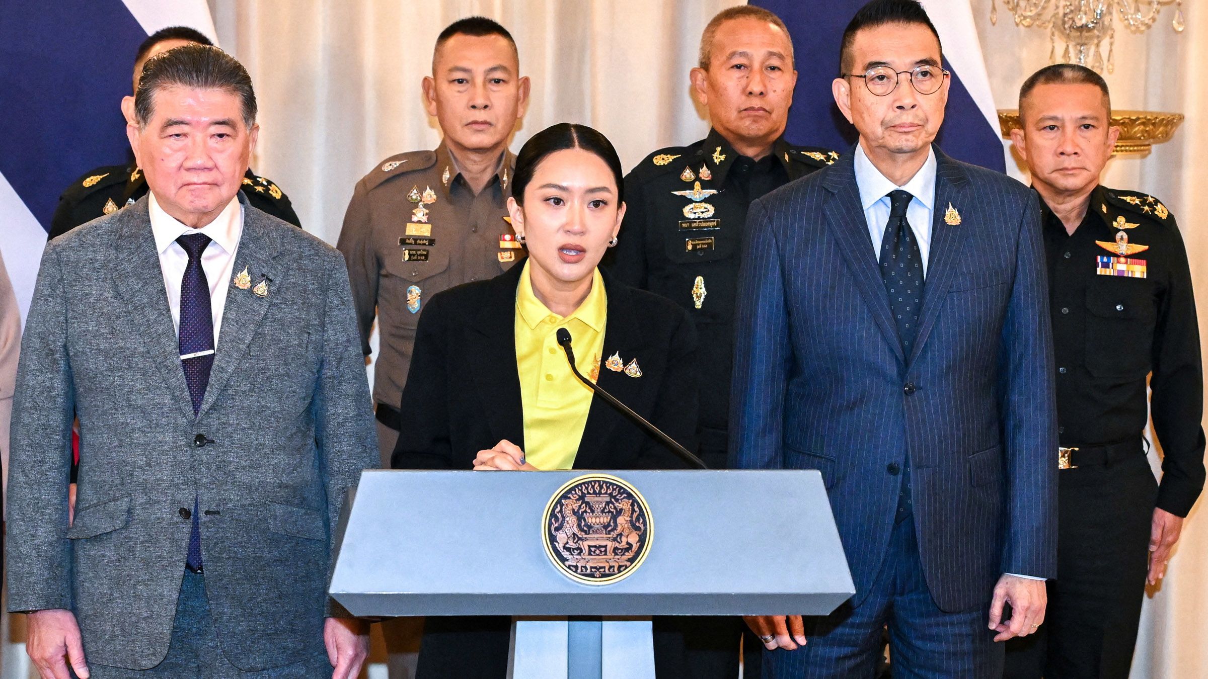 Thailand's Prime Minister Paetongtarn Shinawatra speaks during a press conference on June 19 following the leak of a private phone call between her and Hun Sen, Cambodia’s senate president and former prime minister. (Photo by Panumas Sanguanwong/Reuters)