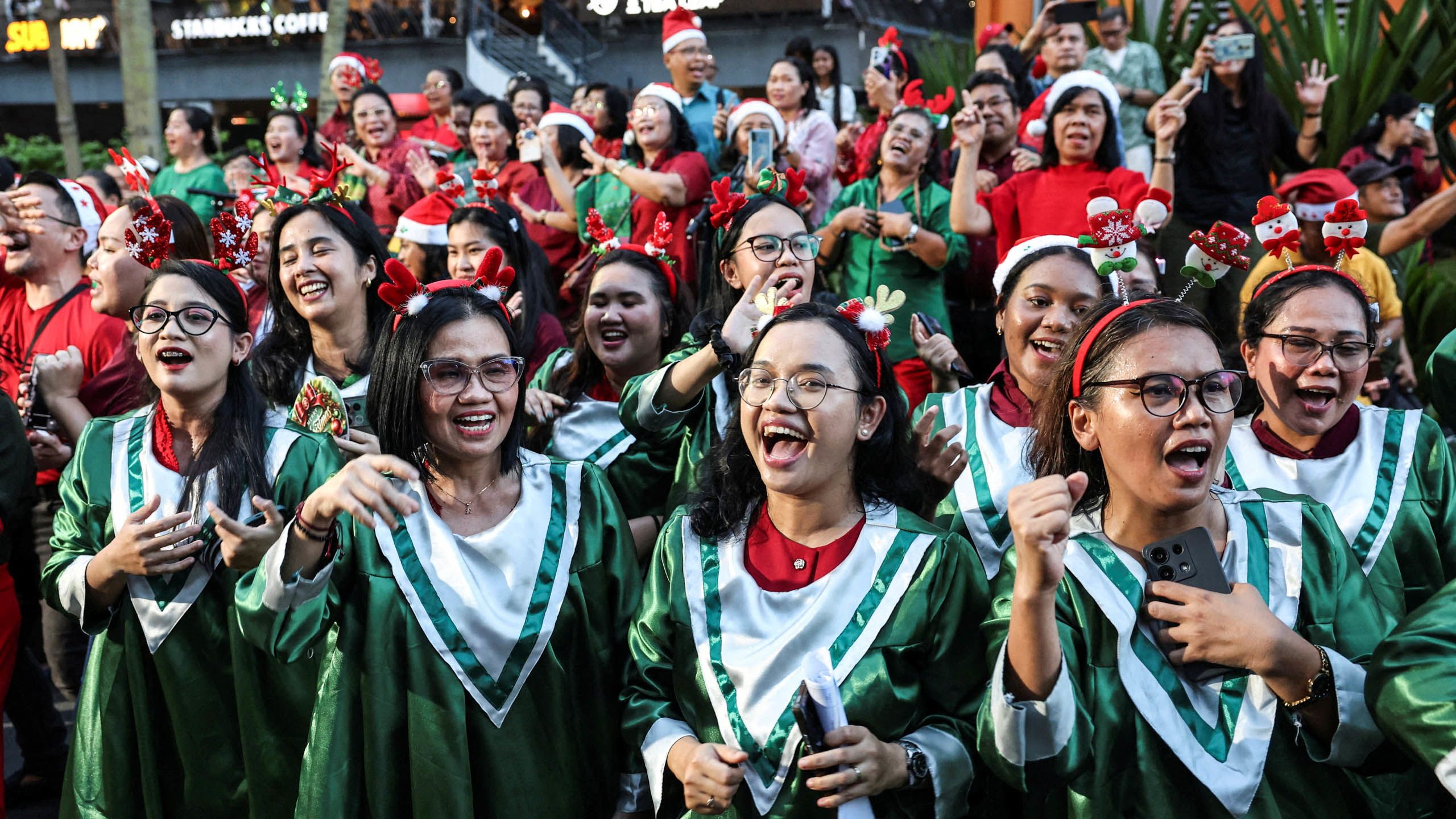 Choir members sing Christmas carols outside the fX Sudirman shopping mall in Jakarta, Indonesia, on Dec. 23. (Photo by Ajeng Dinar Ulfiana/Reuters)