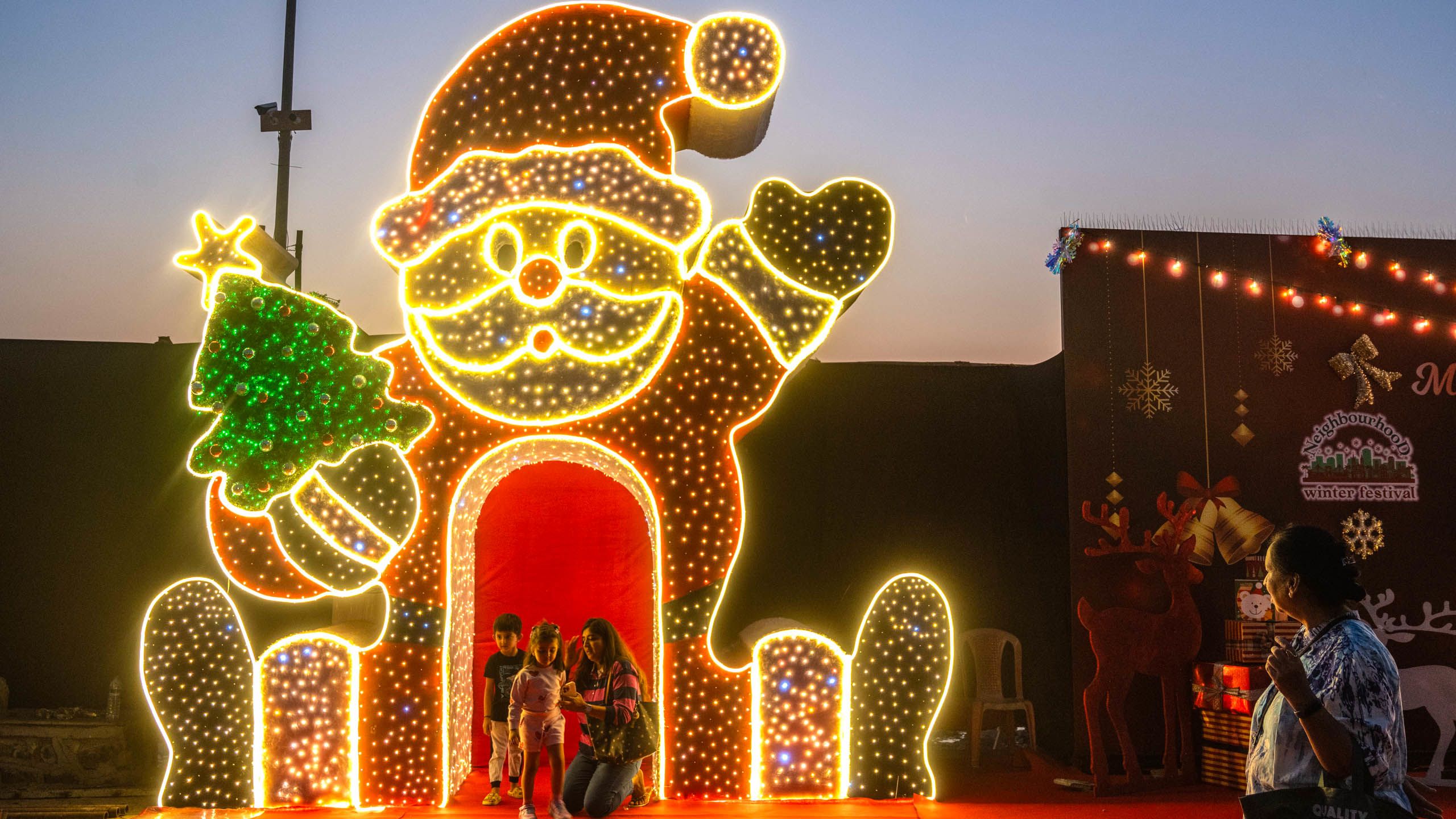 On Christmas Eve, decorative lighting along with Christmas installations illuminate Carter Road, Bandra, in Mumbai, India. (Photo by Satish Bate/Hindustan Times/Getty Images)