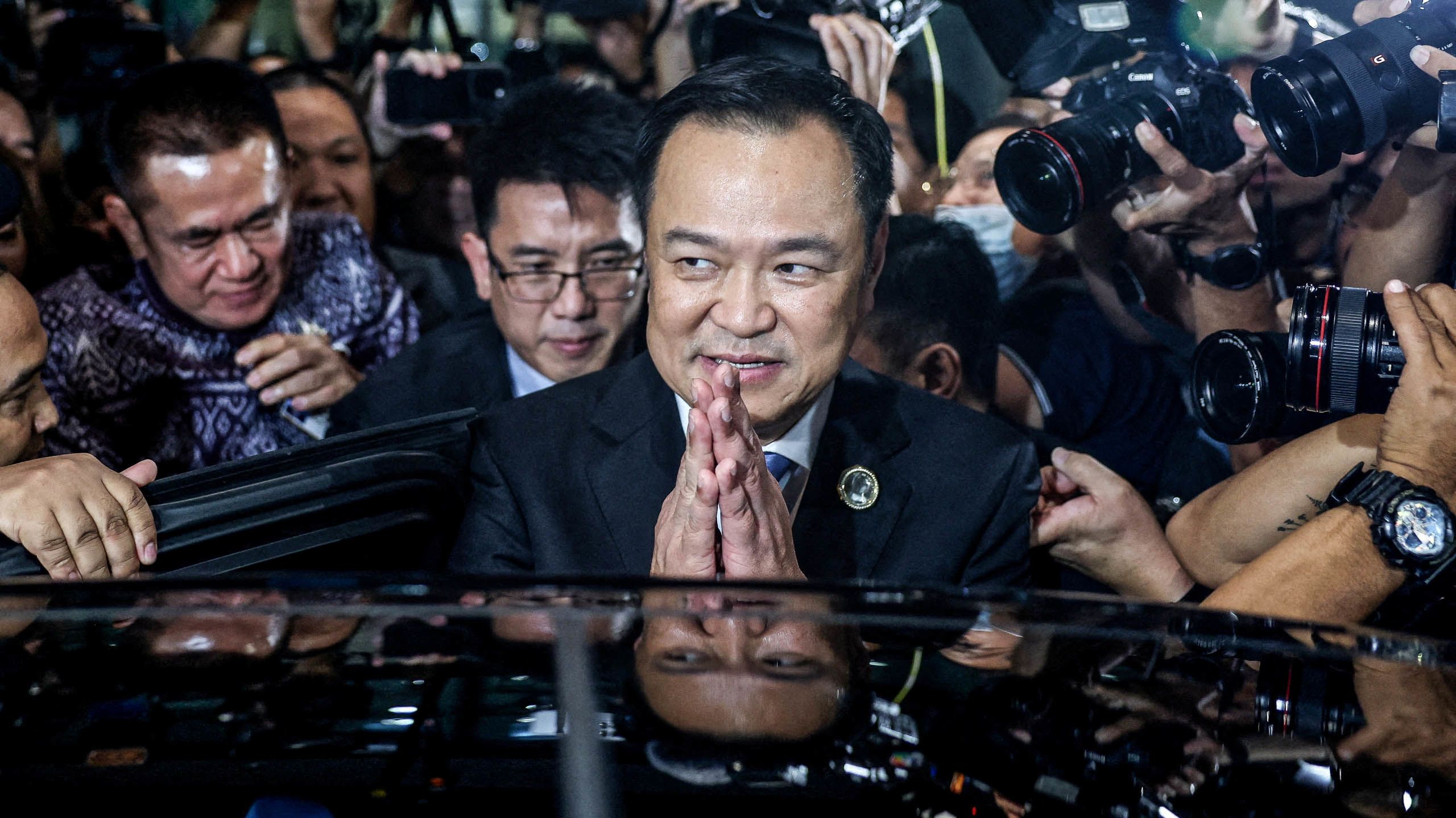 Bhumjaithai Party leader Anutin Charnvirakul reacts next to members of the media after he was elected Thailand's prime minister, replacing Paetongtarn Shinawatra, who was ousted by the Constitutional Court on an ethics violation, in Bangkok on Sept. 5, 2025. (Photo by Chalinee Thirasupa/Reuters)