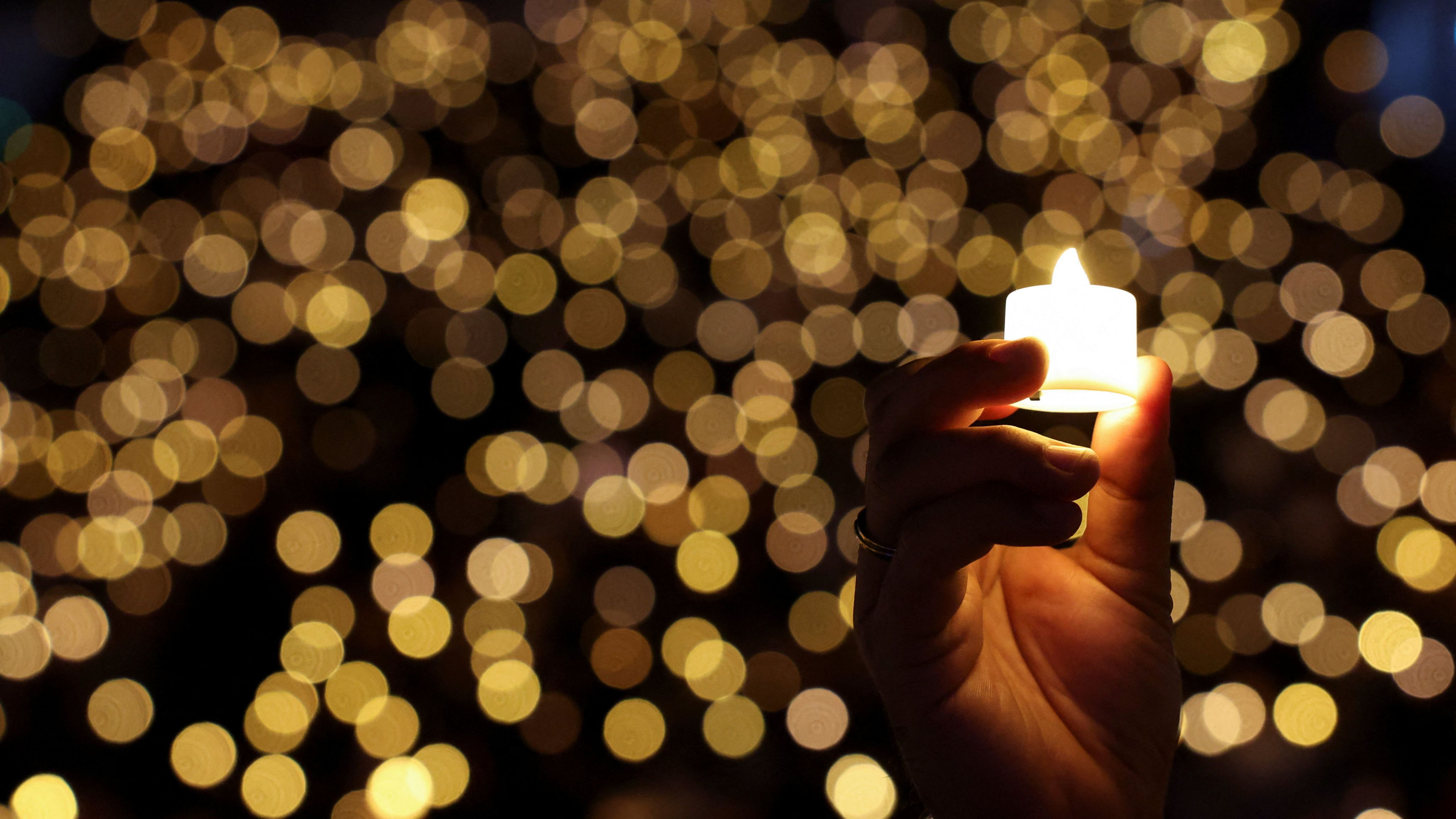 A believer holds an electric candle during a Christmas Mass at Indonesia Arena stadium in Jakarta, Indonesia, on Dec. 24. (Photo by Ajeng Dinar Ulfiana/Reuters)