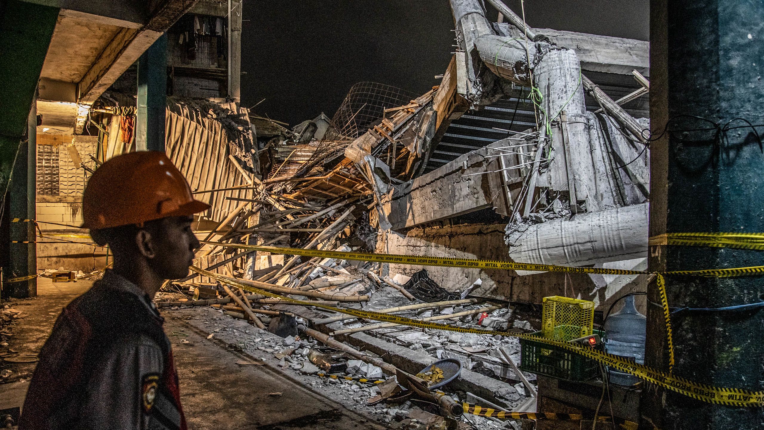 This general view shows the collapsed Islamic Boarding School Al Khoziny on Sept. 30 in Sidoarjo, East Java, Indonesia. The collapse trapped dozens of students who were performing their Asr prayers. Indonesia’s National Search and Rescue Agency reported one student died and 84 others suffered minor to serious injuries. (Photo by Robertus Pudyanto/Getty Images)