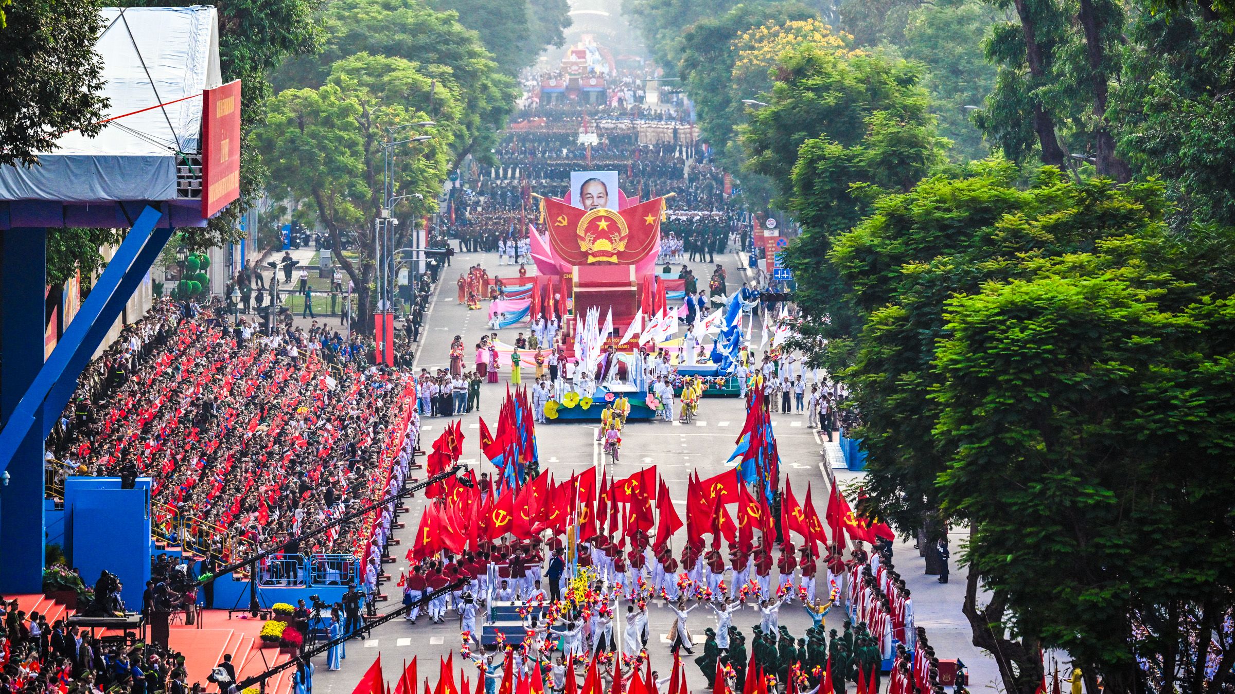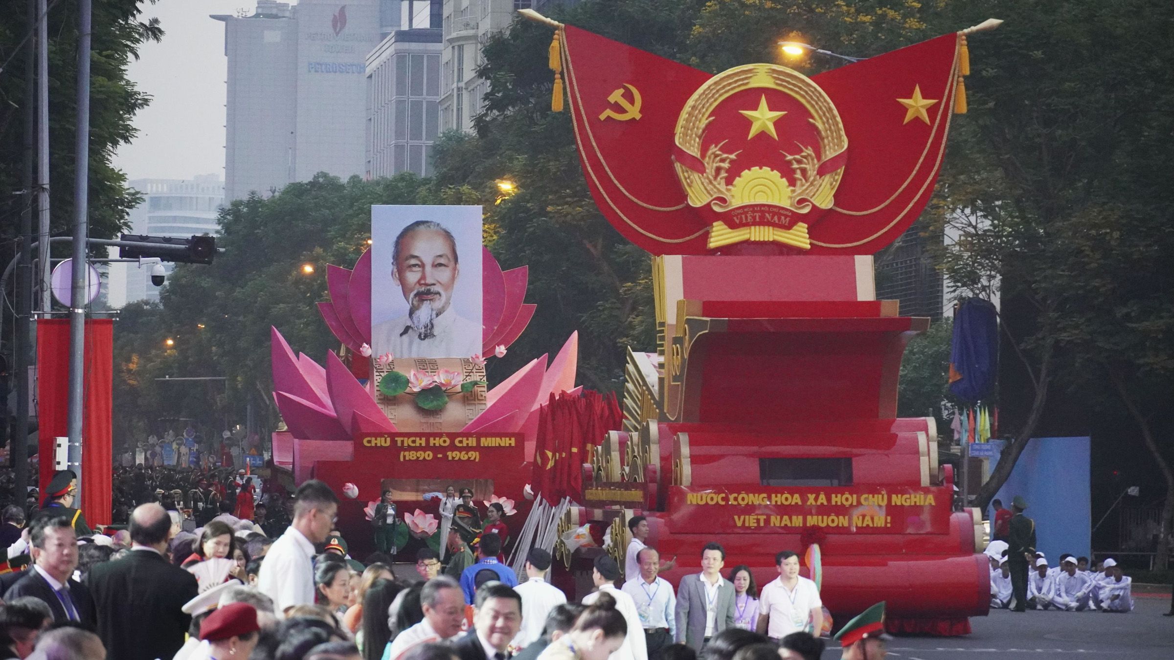 Vietnam celebrated the 50th anniversary of the end of the Vietnam War on April 30. On that day in 1975, communist forces seized Saigon, as Ho Chi Minh City was then known, effectively ending the two-decade-long war between Hanoi and Washington. Hundreds of thousands of Vietnamese slept on the streets overnight in Ho Chi Minh City to watch the celebrations and greet the 13,000 soldiers and police, among others, who marched during the ceremony on April 30. (Photo by Kyodo)