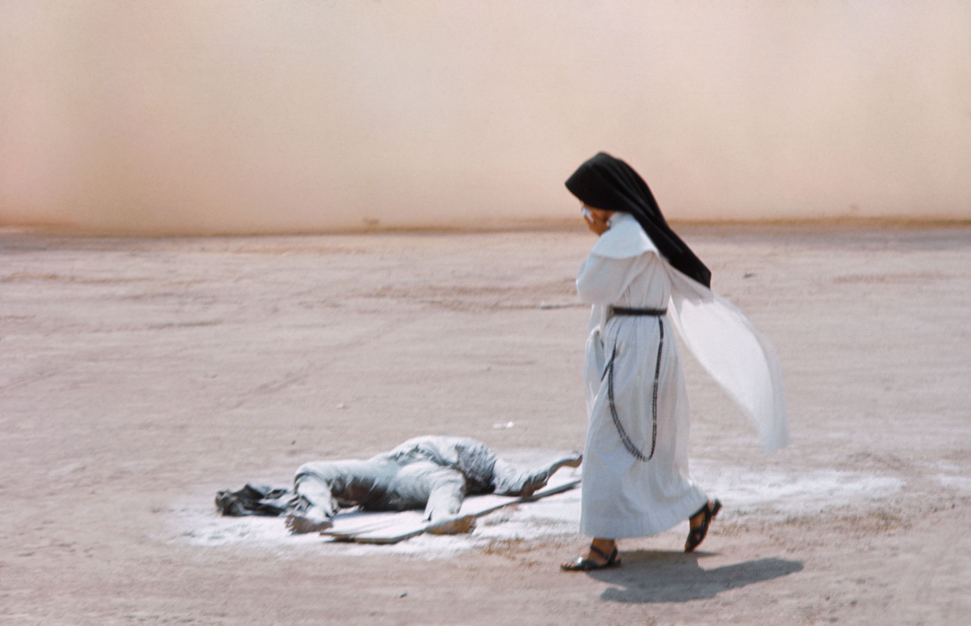 A Catholic nun passes the lime-dusted body of a North Vietnamese soldier. Page – and photographers like Don McCullin, Larry Burrows, Henri Huet and Kyoichi Sawada – brought unvarnished images of an ugly, unwinnable war to the news magazines and color supplements of the 1960s. Militaries have attempted to control the narrative by embedding journalists ever since. (Photo by Tim Page/Getty Images)