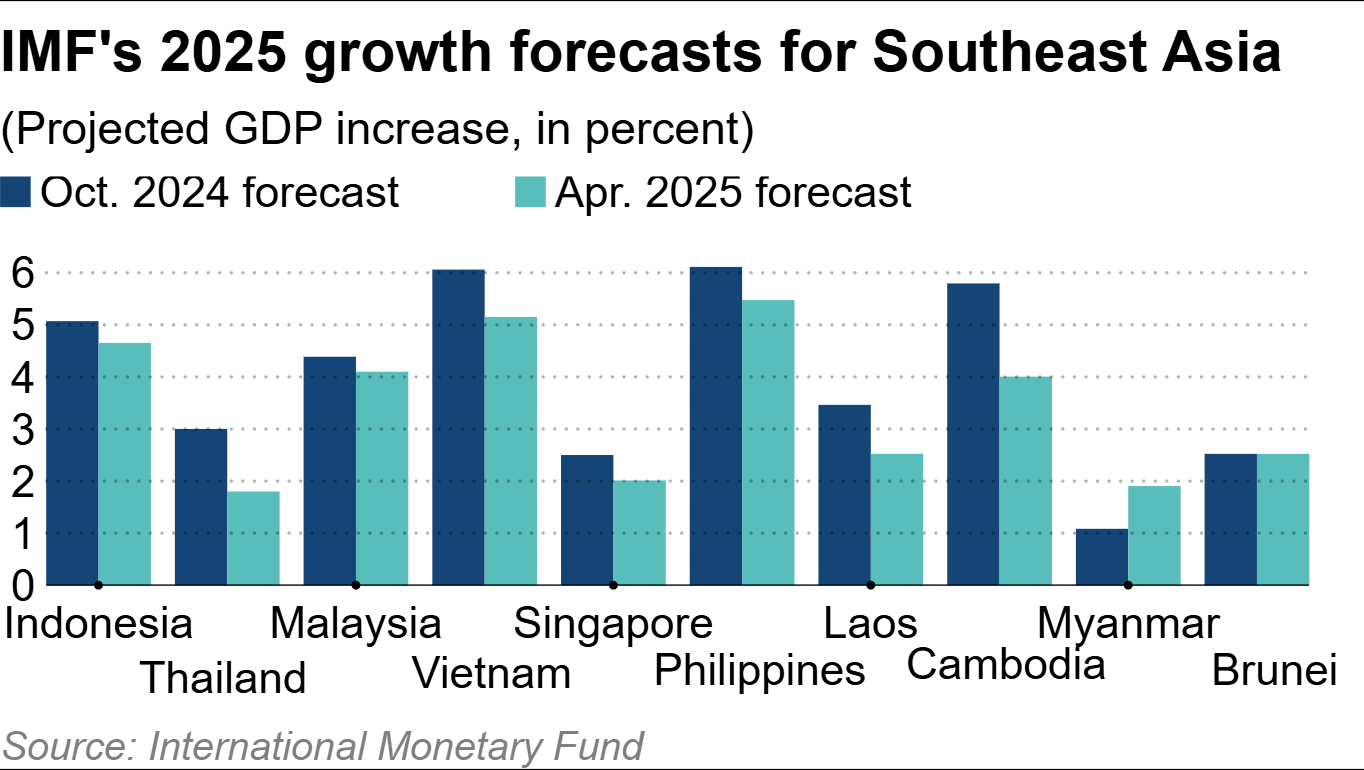 The IMF in April revised its 2025 growth forecast for Vietnam to 5.2%, down from 6.1% in October. This is better than Thailand, for which the agency cut its forecast by 1.2 percentage points, but still far from Vietnam's target of 8% for 2025.