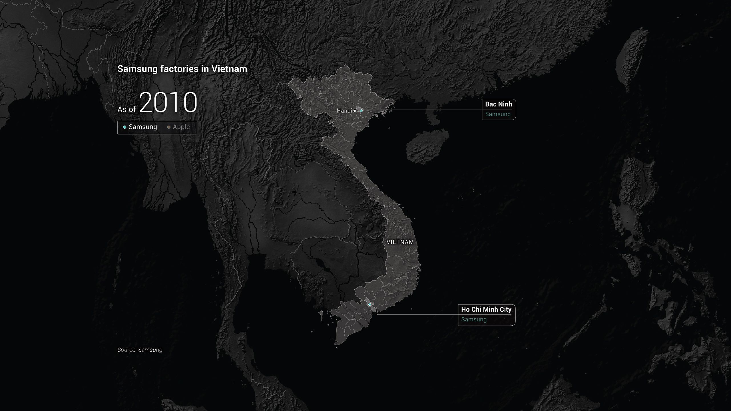 Samsung set up its first mobile phone factory in northern Bac Ninh province 2009. In 2014, it opened a second mobile phone factory in Thai Nguyen. Samsung now manufactures about 40% of its smartphones in Vietnam.