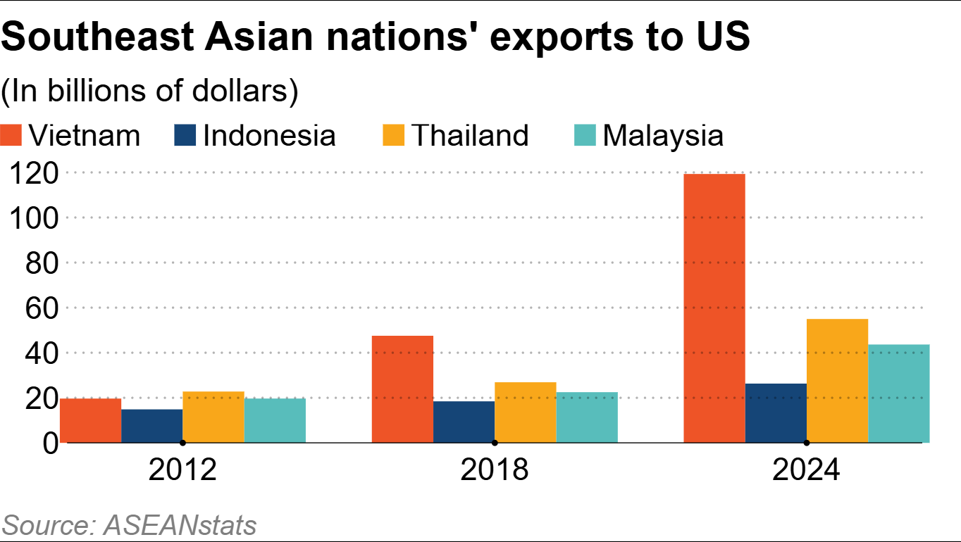 As a result, Vietnam's trade surplus with the U.S. is the fourth largest in the world after China, the EU and Mexico, making it a target for Trump. So-called reciprocal tariffs on Vietnam are 46%, the third highest in Southeast Asia after Cambodia and Laos.