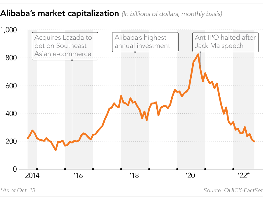 A sweeping crackdown on the industry starting in 2020 has sent share prices tumbling. After Ma voiced criticism of financial regulators, Chinese authorities forced his company, Ant Group, a fintech arm of Alibaba, to halt an expected record-breaking IPO. Ride-hailing company Didi Global was forced to delist from New York and fined 8 billion yuan ($1.1 billion at current exchange rates) for breaking data security and personal information protection laws. Multiple companies have been hit by antitrust fines or restrictions, such as limits on computer gaming.