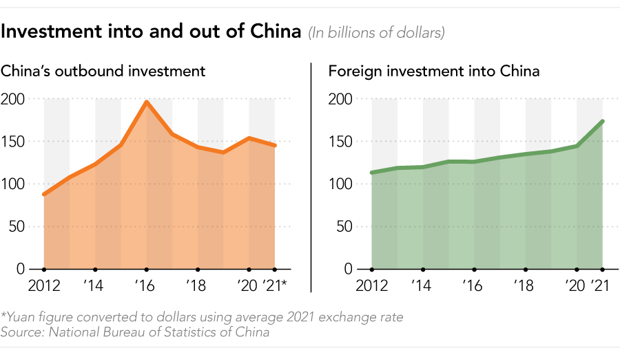 But China's relationship with foreign investors has also grown more complex, aggravated by the country's adherence to a zero-COVID policy and its souring ties with major Western countries, which has started a decoupling of the Chinese and U.S. economies.
